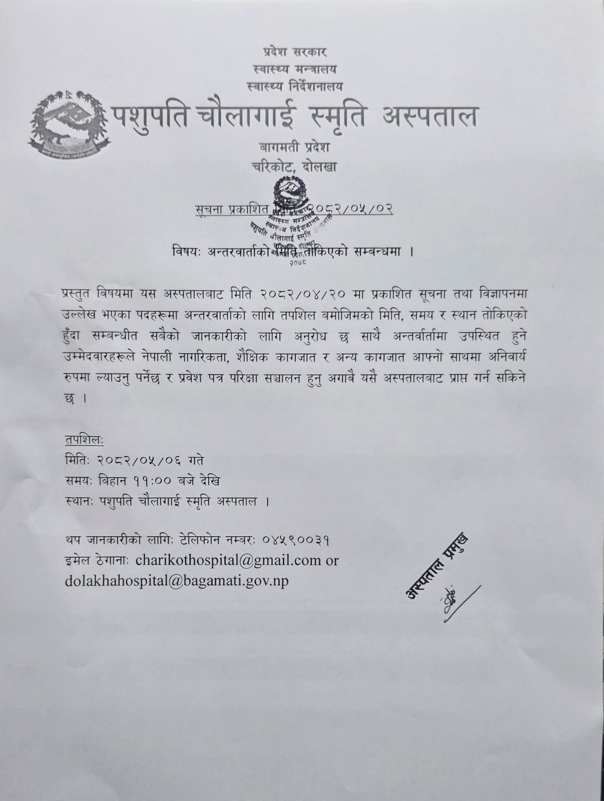 • पशुपति चाैलागाइ स्मृति अस्पताल